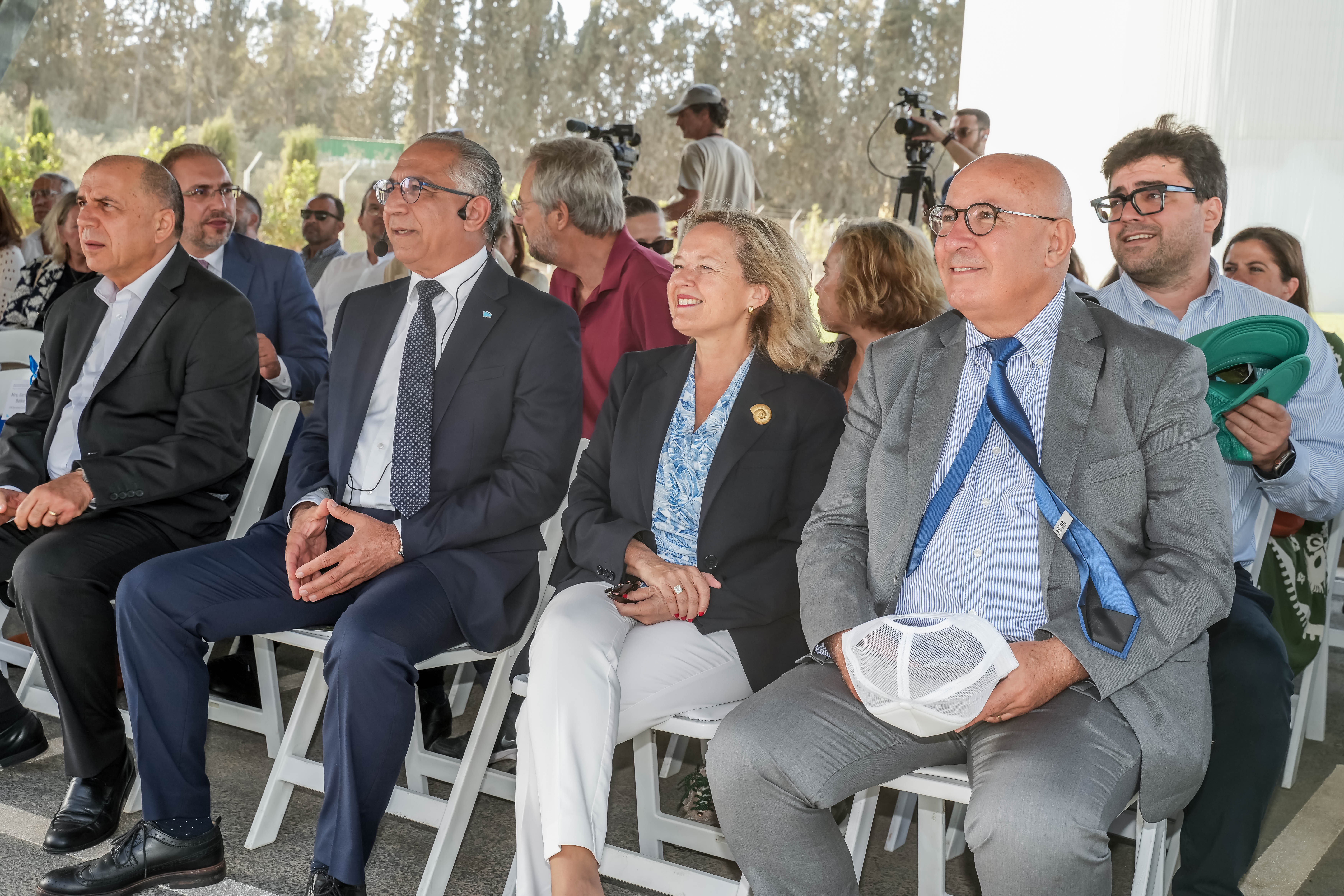 Κατά τον σύντομο χαιρετισμό της, η Πρόεδρος της Ευρωπαϊκής Τράπεζας Επενδύσεων, Nadia Calviño, εξέφρασε την ικανοποίησή της για τα αποτελέσματα των πρωτοβουλιών της Τράπεζας, επισημαίνοντας ότι «σε αυτό το υπέροχο νησί, το οποίο είναι ιδιαίτερα ευάλωτο απέναντι στην κλιματική αλλαγή, και ιδίως ως προς τα ζητήματα διαχείρισης των υδάτινων πόρων, οι παρεμβάσεις μας αποκτούν ιδιαίτερη σημασία». Πρόσθεσε ότι η ίδια νιώθει συγκίνηση που αντικρίζει στο χώρο του Εργοστασίου την ευρωπαϊκή σημαία «η οποία αντιπροσωπεύει όλες τις αξίες μας, το γεγονός ότι είμαστε πιο δυνατοί μαζί και αποφασισμένοι να συνεχίσουμε να στηρίζουμε την Κύπρο και τη Λεμεσό».