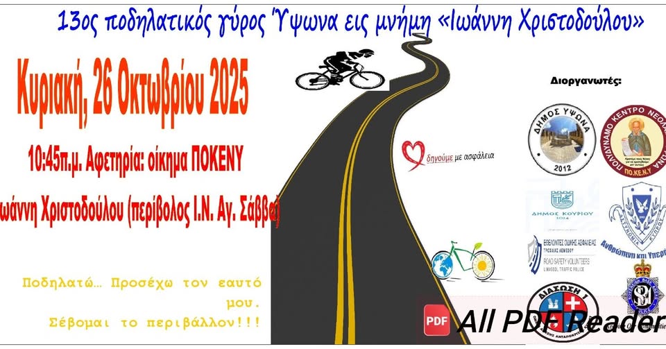 Ο Ποδηλατικός Γύρος πραγματοποιείται κάθε χρόνο ως θεσμός του Δήμου, και φέτος αποκτά ιδιαίτερη σημασία, αφιερωμένος στη μνήμη του Ιωάννη Χριστοδούλου, αναδεικνύοντας την αξία της προσφοράς και της συλλογικής δράσης.