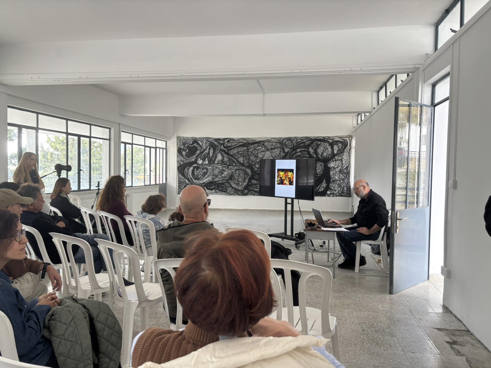 εστιάζοντας στη ζωγραφική πράξη, τη σχέση σώματος–χώρου και τις πολλαπλές χωρικότητες που ενεργοποιεί η καλλιτεχνική δημιουργία. Ακολούθησε συζήτηση με έντονο ενδιαφέρον και ενεργή συμμετοχή των παρευρισκόμενων.