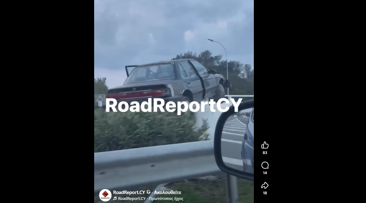 Στο σημείο μετέβησαν μέλη της Δύναμης όπου εντοπίστηκε όχημα, στην κατάσταση που φαίνεται και σε βίντεο που δημοσιεύθηκε στο RoadReportCY. Να βρίσκεται δηλαδή “κρεμασμένο” επάνω σε περιτοίχισμα και να αιωρείται πάνω από το δευτερεύον οδικό δίκτυο.
