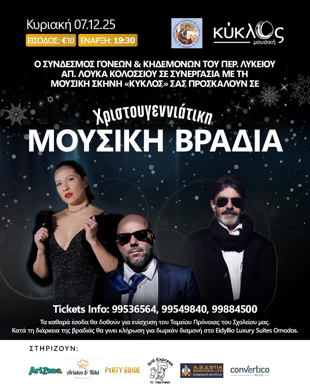 Την εκδήλωση παρουσιάζει ο αγαπημένος Μιχάλης Σοφοκλέους με τη ξεχωριστή, μοναδική του ενέργεια.