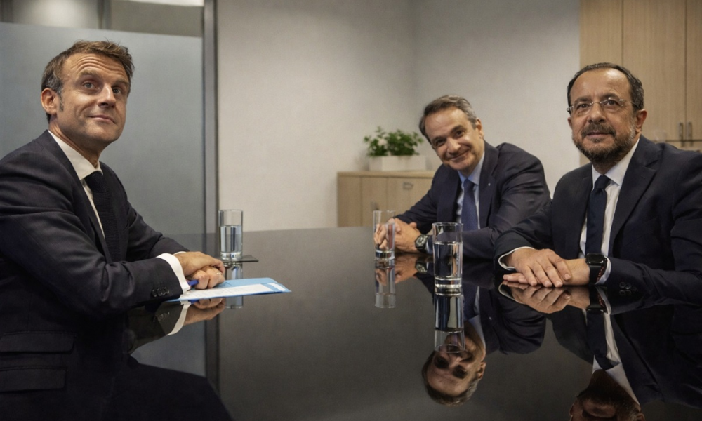 Σε εξέλιξη η τριμερής Μητσοτάκη, Μακρόν και Χριστοδουλίδη στην Πάφο