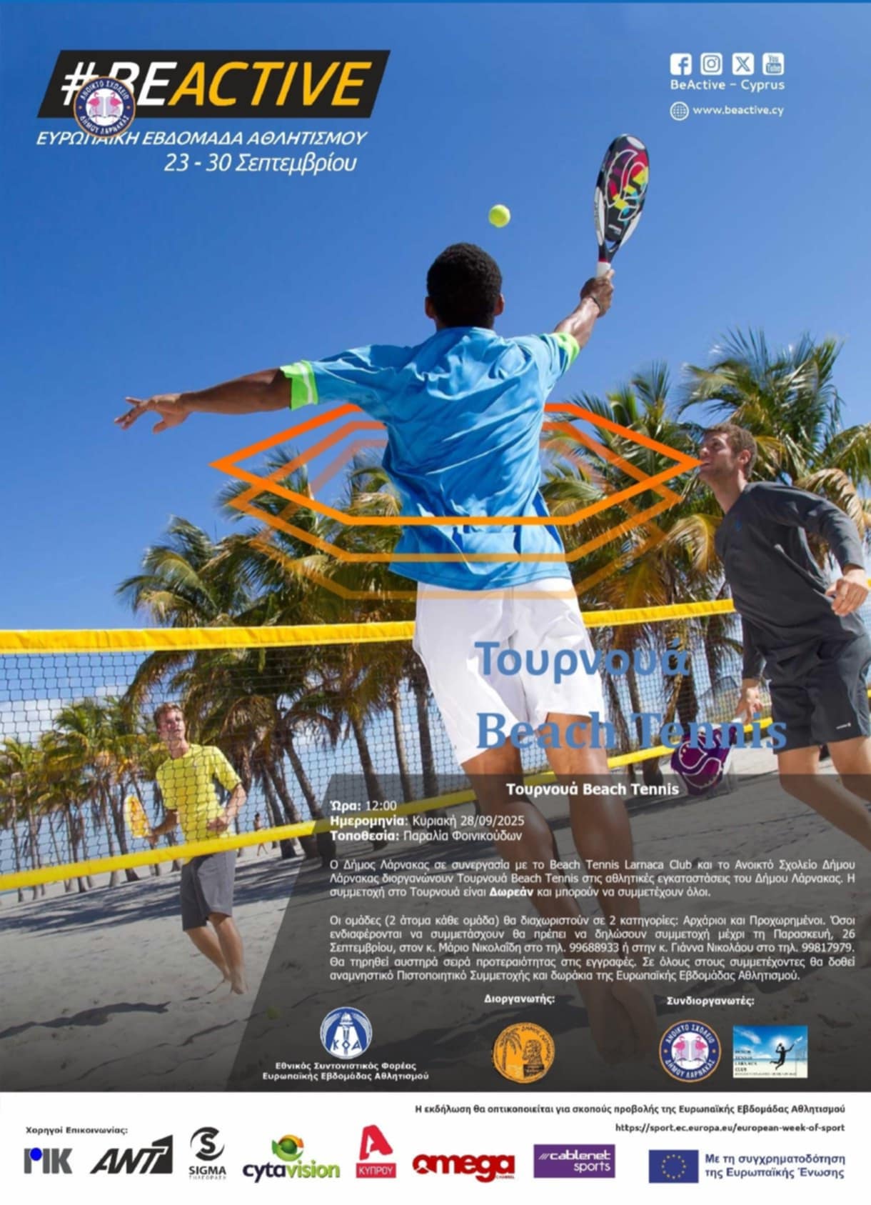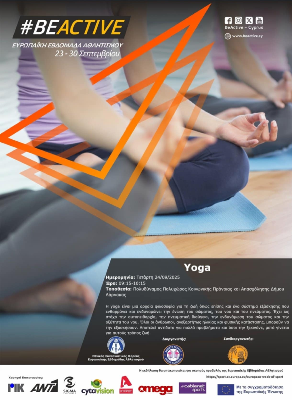 Το πρόγραμμα της Ευρωπαϊκής Εβδομάδας Αθλητισμού περιλαμβάνει 11 δράσεις, όπως: Τουρνουά Beach Tennis, , Σκοποβολή στο Σκοπευτήριο Λάρνακας, Πινγκ Πονγκ, Πιλάτες, Yoga, Ενόργανη Γυμναστική, Ρυθμική Γυμναστική και άλλα.