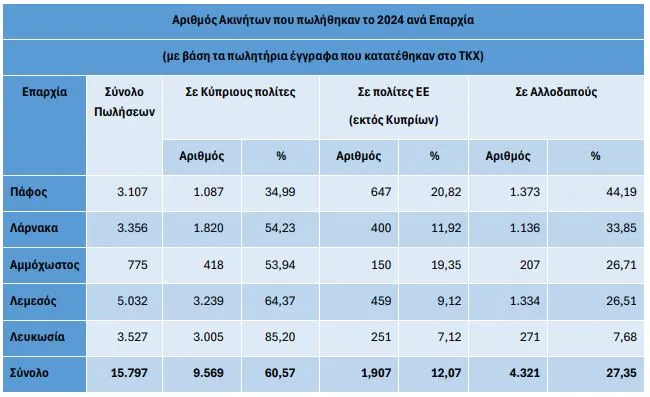 Η Ελεγκτική στην έκθεσή της αναφέρει ότι για το 2024 οι πωλήσεις προς αλλοδαπούς ανήλθε σε 27%. Μόνο το 61% των πωλήσεων αφορούσε σε Κύπριους αγοραστές.
