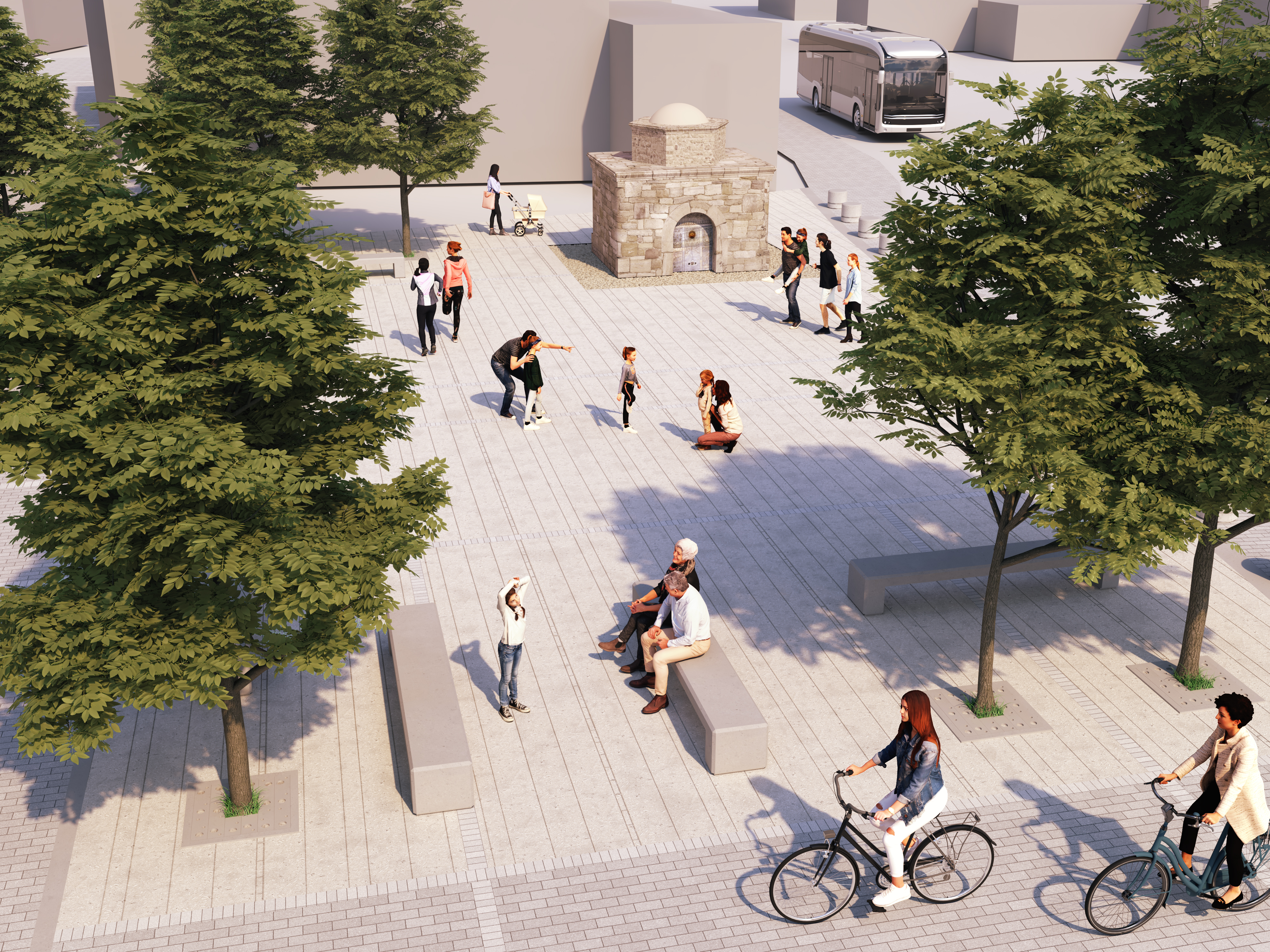 Η ανάπλαση θα υλοποιηθεί με τη χρήση ποιοτικών υλικών, όπως γρανίτες, κυβόλιθοι από σκυρόδεμα και φυσικά πετρώματα, ενώ θα δοθεί ιδιαίτερη έμφαση: