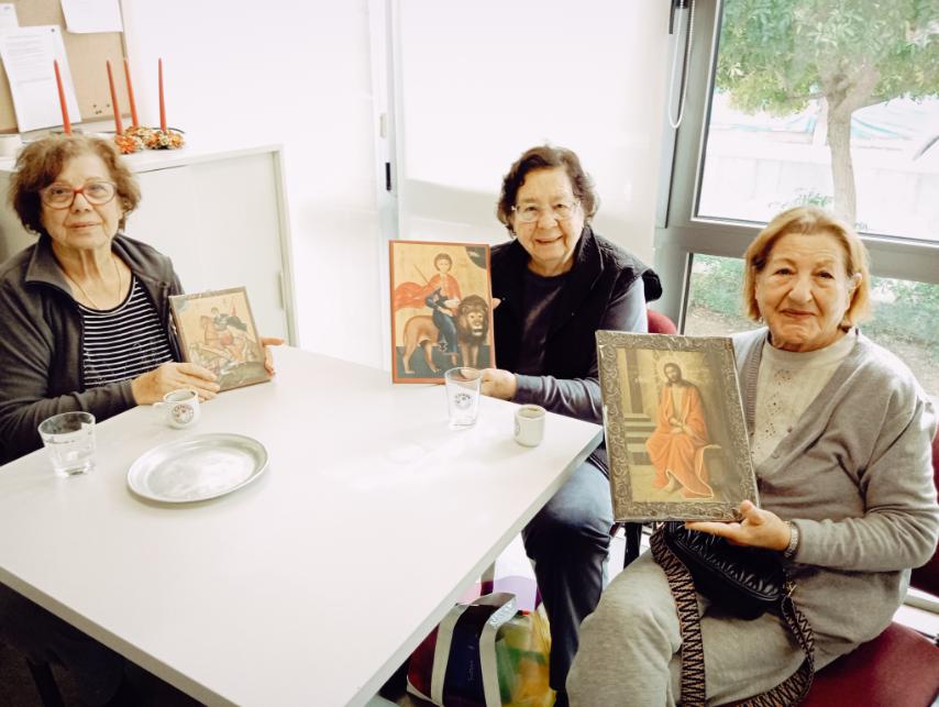 Οι εικόνες ανήκαν στην ηλικιωμένη κυρία κα Αρέστου, η οποία τις πρόσφερε με χαρά, και οι δύο φίλες επέλεξαν να τις δωρίσουν στο Κέντρο, προσθέτοντας έτσι μια προσωπική και συγκινητική νότα στην εθελοντική τους δράση.