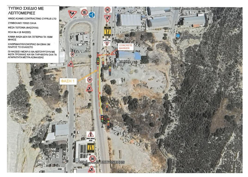 Σημειώνεται ότι η διαχείριση της τροχαίας κυκλοφορίας θα γίνεται με τη λειτουργία προσωρινού σταθερού συστήματος φώτων τροχαίας.