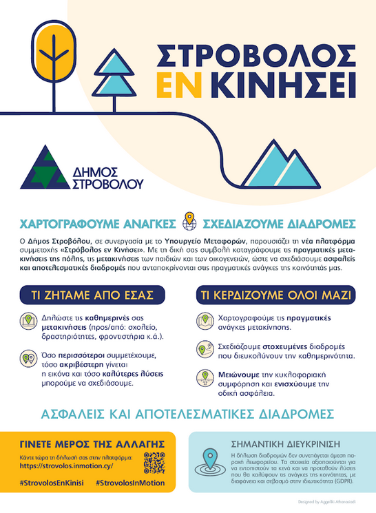 Το κοινό καλείται να συμπληρώσει τις καθημερινές τους μετακινήσεις στη σελίδα https://strovolos.azurewebsites.net (μετακινήσεις παιδιών από και προς το σχολείο, δραστηριότητες, φροντιστήρια κ.ά).