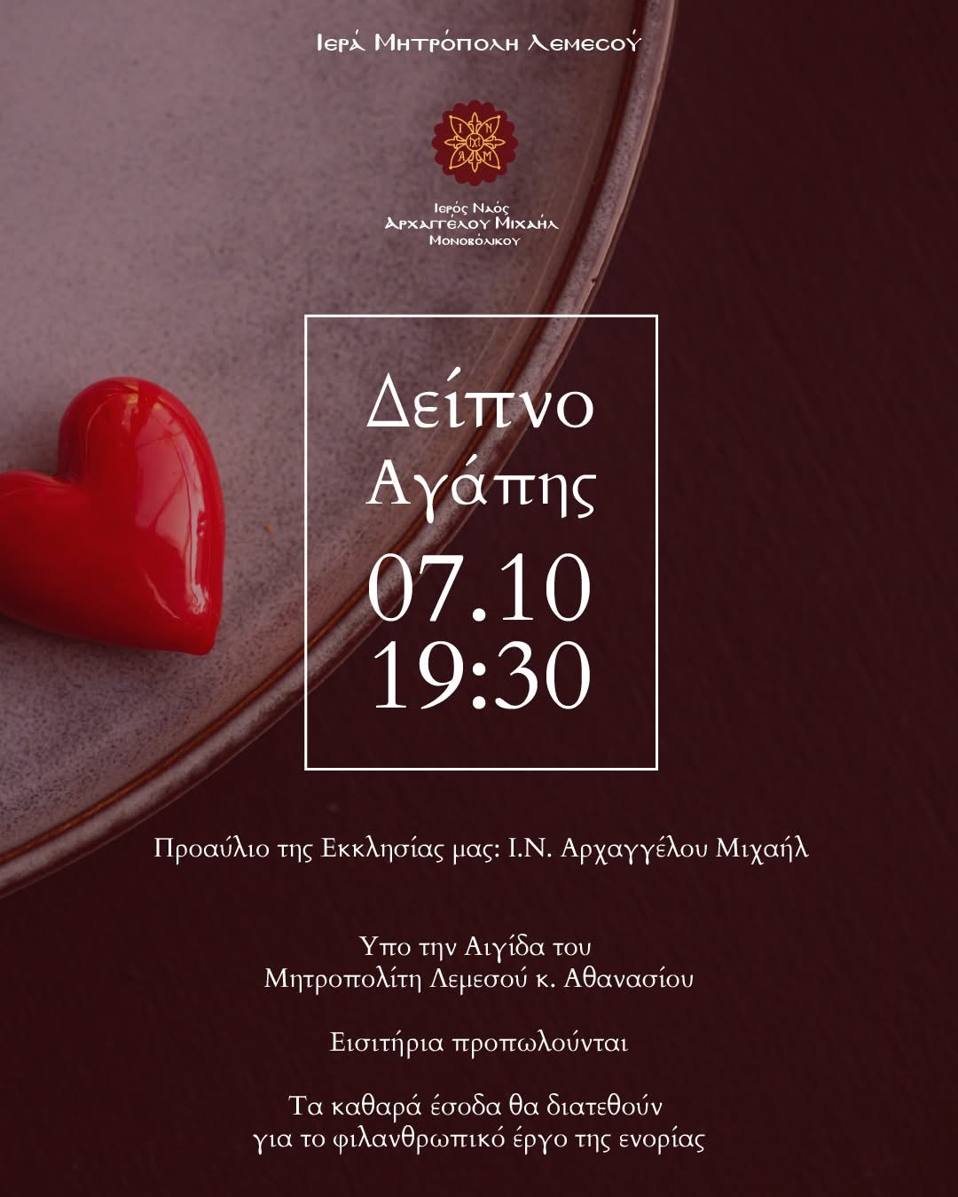 Κατά τη διάρκεια των εγκαινίων, θα πραγματοποιηθεί αγιασμός από τον Μητροπολίτη Κιτίου, κ. Νεκτάριο. Χαιρετισμό θα απευθύνουν ο Έντιμος Δήμαρχος Λάρνακας, κ. Ανδρέας Βύρας, ο δωρητής κ. Χαράλαμπος Χριστοφόρου, καθώς και ο εξοχότατος Πρέσβης της Ελλάδας, κ. Ιωάννης Παπαμελετίου. Στη συνέχεια, θα ακολουθήσει καλλιτεχνικό πρόγραμμα.