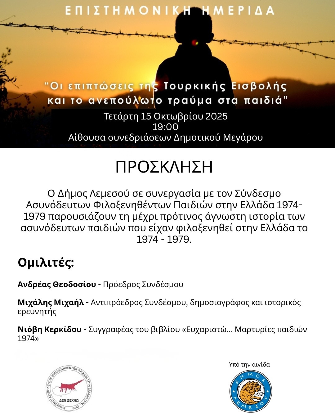Λεμεσός: Εκδήλωση μνήμης για τα ασυνόδευτα παιδιά που φιλοξενήθηκαν στην Ελλάδα (1974–1979)