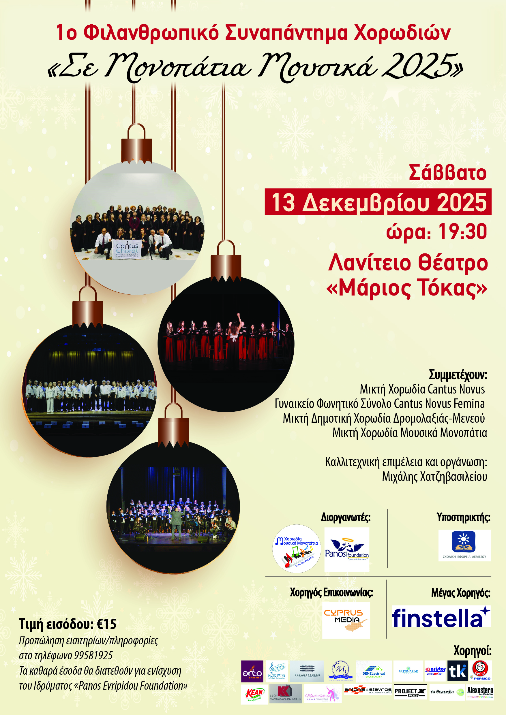 1ο Φιλανθρωπικό Συναπάντημα Χορωδιών “Σε Μονοπάτια Μουσικά 2025” στη Λεμεσό